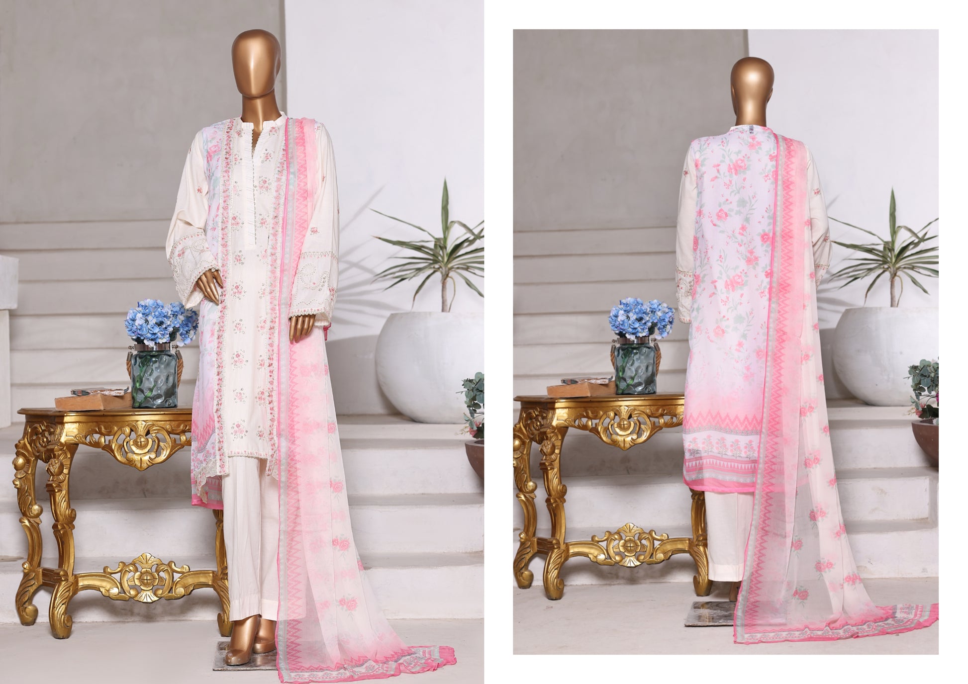 Upgrade your wardrobe with the timeless elegance of Bin Saeed’s Stitched Embroidered Lawn with Gown, now available at an unbeatable sale price! Crafted from premium lawn fabric, this 3-piece outfit features intricate embroidery and a beautifully stitched design that exudes sophistication and style.