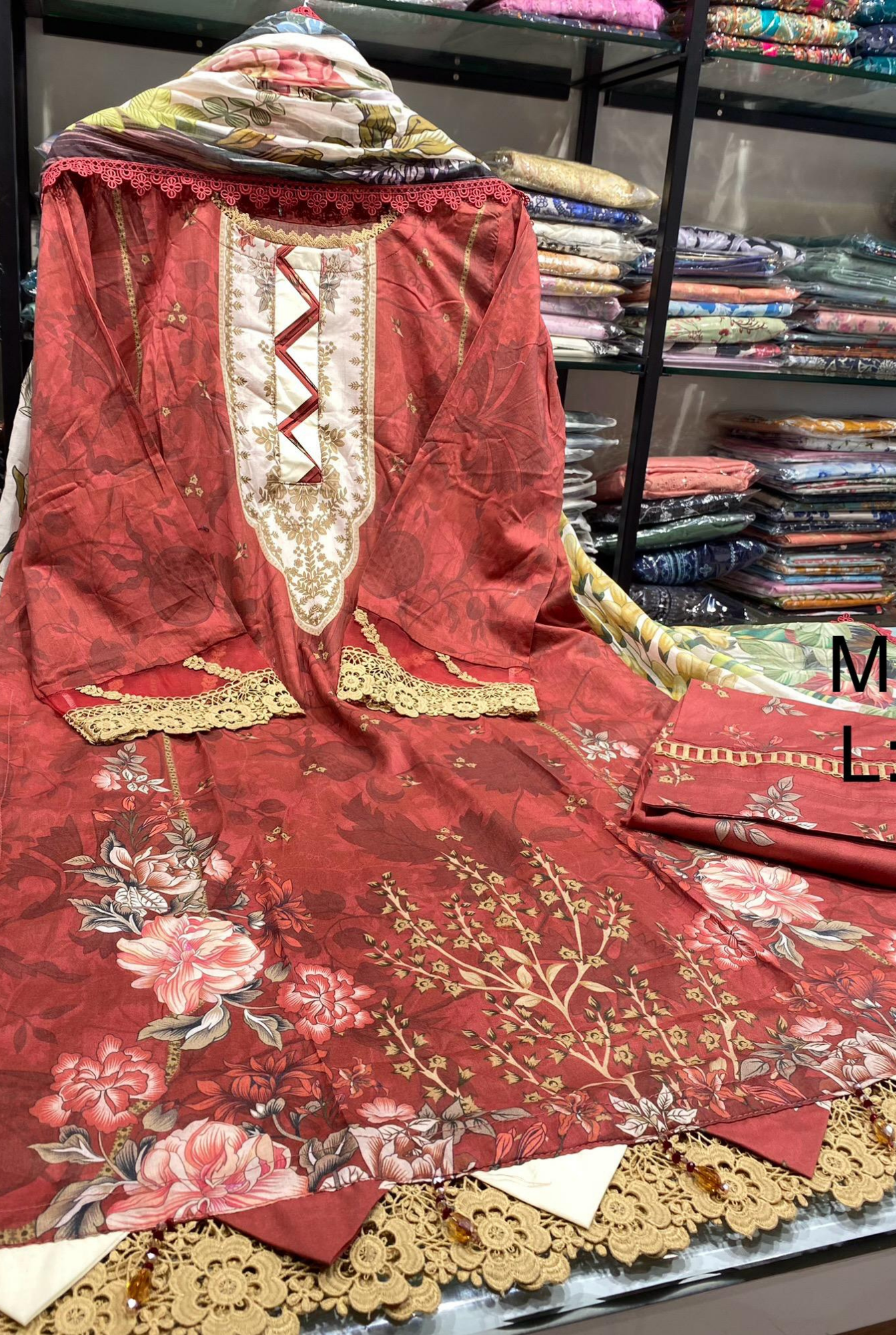 Digital Printed Lawn Shirt With Detailing Lace Digital Printed Lawn Dupatta With Four Side Lace Boader Digital Printed Cotton Trouser
