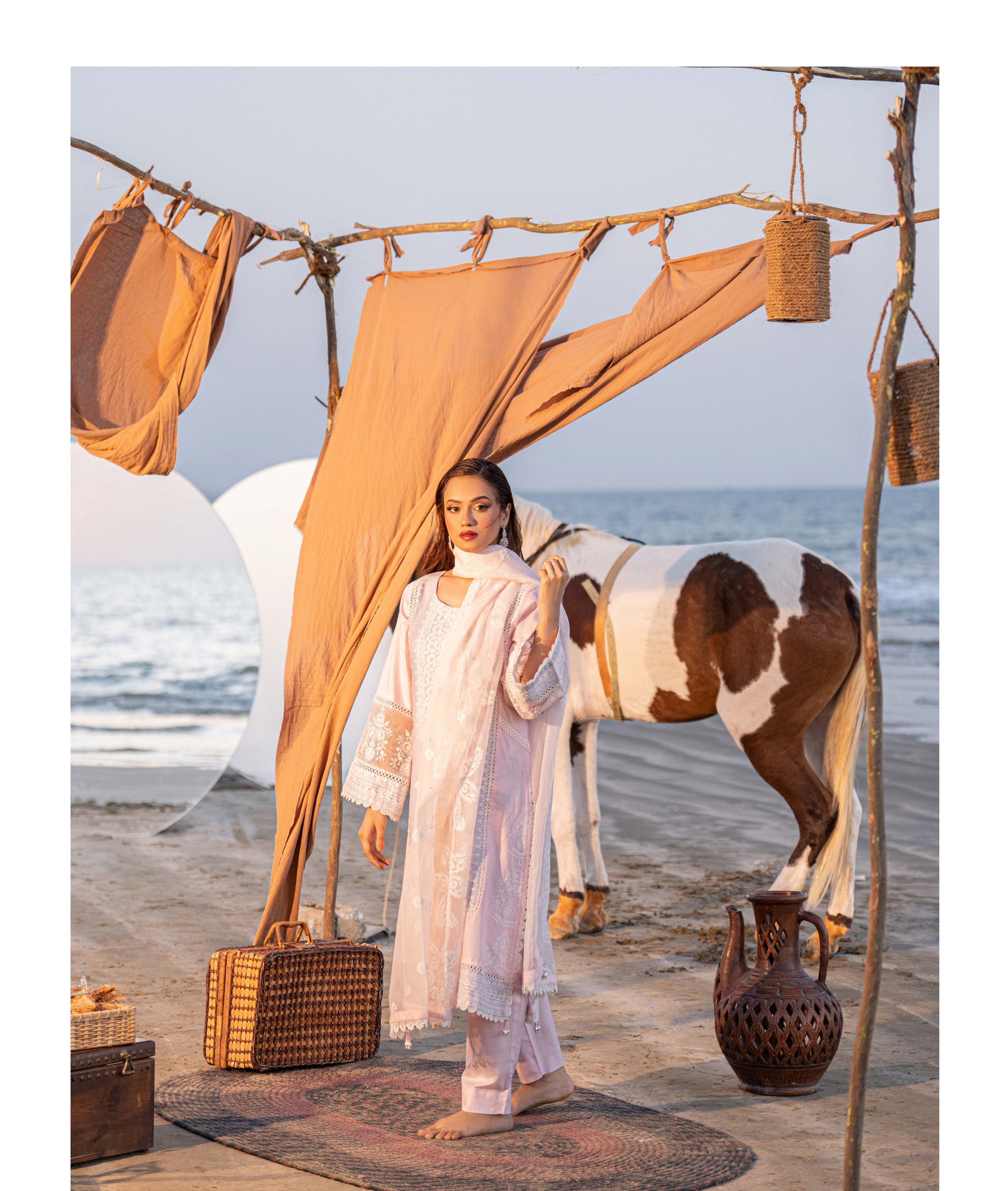 Trouser: Plain cotton trousers, offering a sleek and timeless complement to the ensemble.